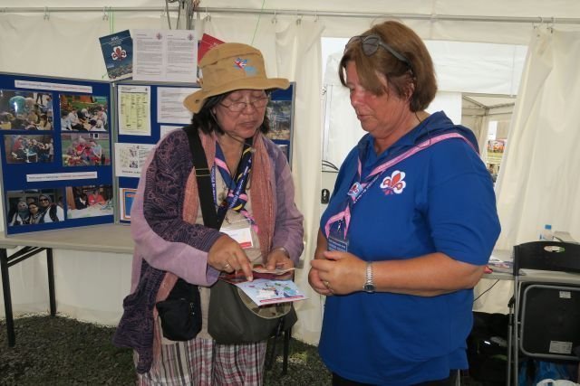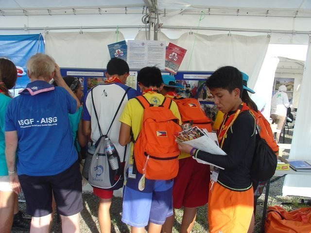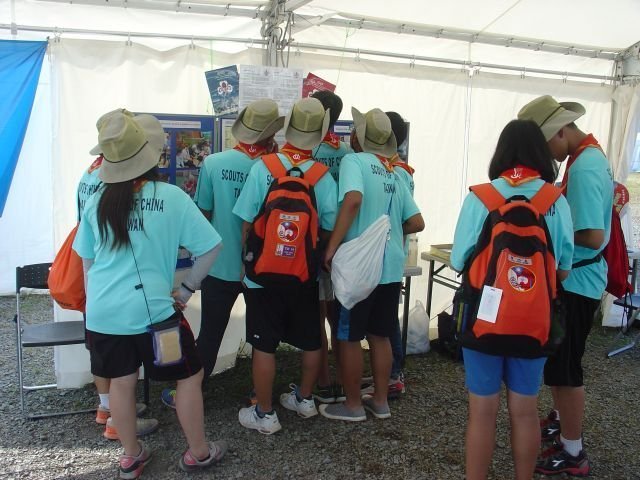 The young Scouts need a stamp in their Jamboree book