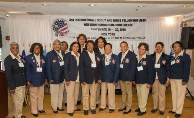 Hand over of used stamps for ISGF Stamp Bank (Henriette (Suriname) and Leny (ex-officio WCom)
